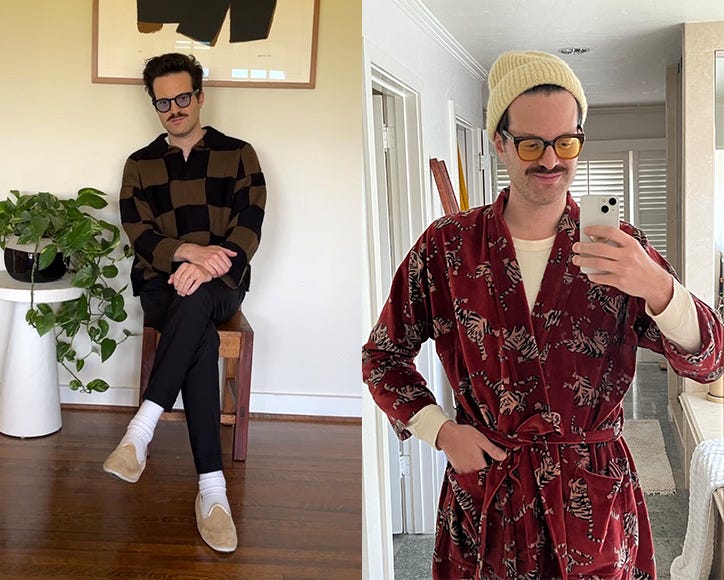 You can do it. I believe in you. Be the well dressed version of yourself, even when you’re chillin’ at home alone, and I promise you, your quality of life will improve. Upgrade a few simple pieces and this will all become second nature. Please let me know how absurd you think all of this is in the comments. I also want to know who your loungewear style icons are and who I should check out on Substack or elsewhere.